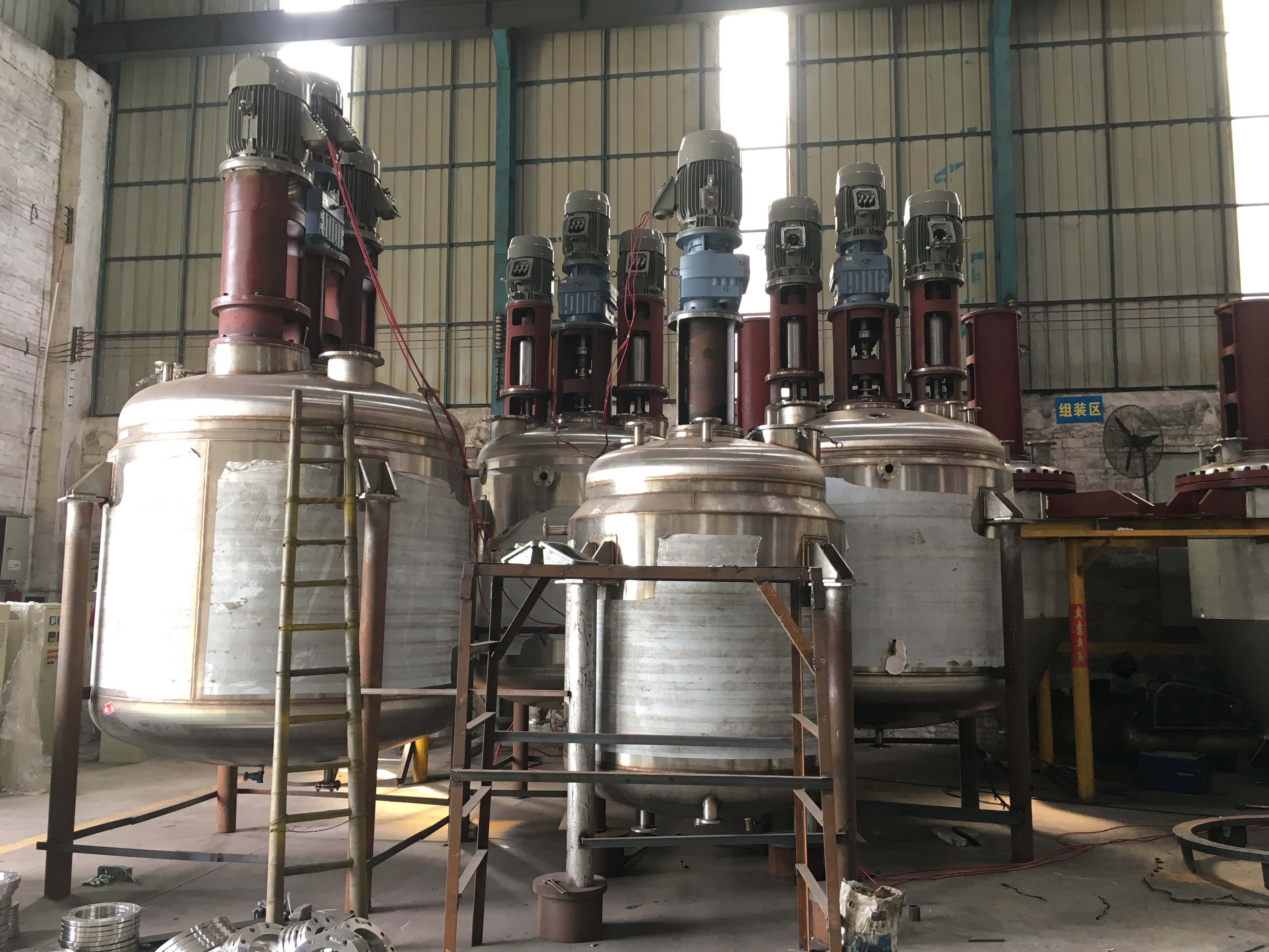 多臺不銹鋼反應(yīng)釜生產(chǎn)中,此類型的反應(yīng)釜是一種多功能分散釜,又名:高速分散攪拌釜、多功能分散乳化釜。其應(yīng)用于相對粘度比較高的化工產(chǎn)品,例如: